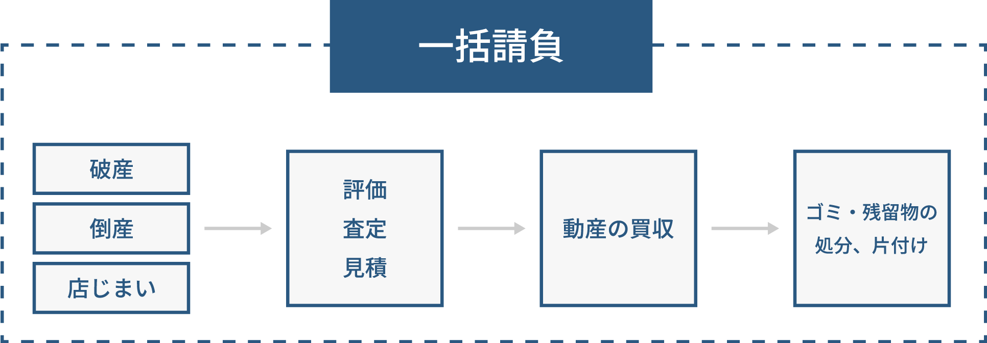 永商ではそれら個別の工程を一括で請け負う事で、コスト面での負担を軽減すると共に、提携の各業者と連携によってスムーズかつ的確な処理を実現する事ができます。